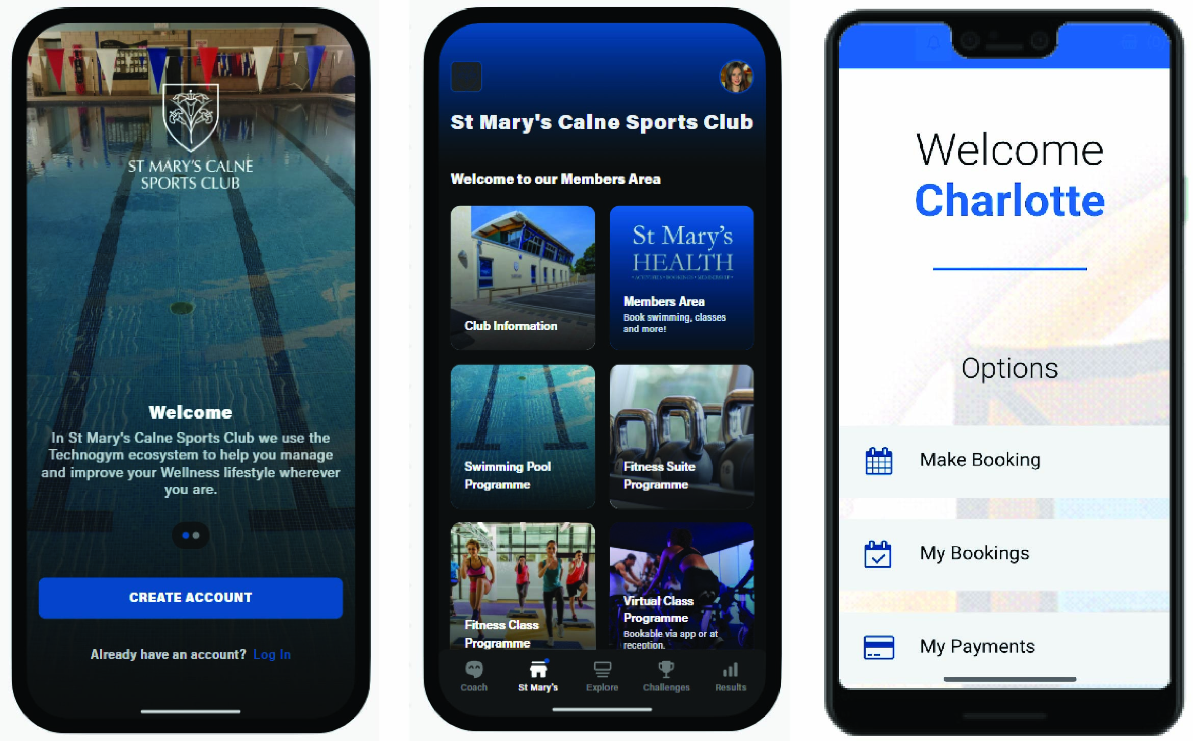 Once you are logged in, click on the 'St Mary's' area at the bottom of the screen and this will take you to the Members Only area. From here you will find the same information that you were using on the old app, including your St Mary's Health booking system. Click on the 'St Mary's Health' icon and log in as normal to continue to book classes, swim sessions and access your account information. Your previous log in details will not need to be changed and there is no need to create a new account.