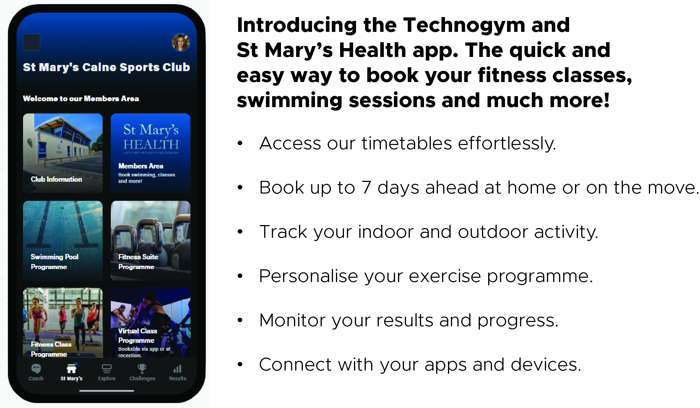 The St Mary's Technogym App also helps to support your fitness journey, allowing you to sign in on the gym equipment and monitor your progress, create bespoke workout routines and track your indoor and outdoor activity.